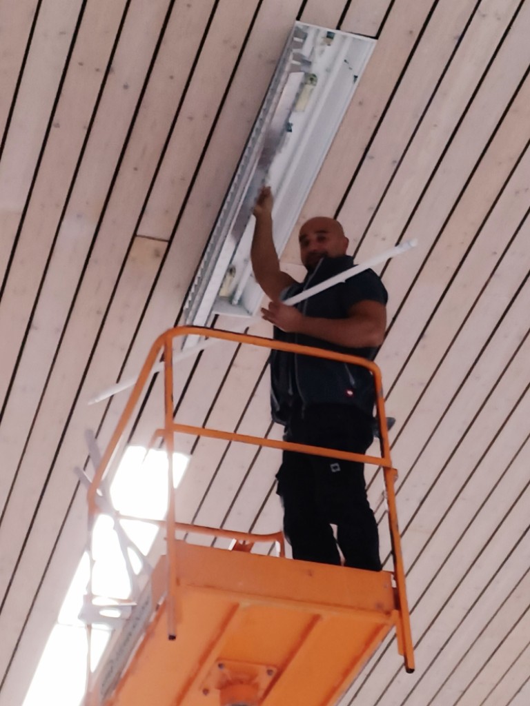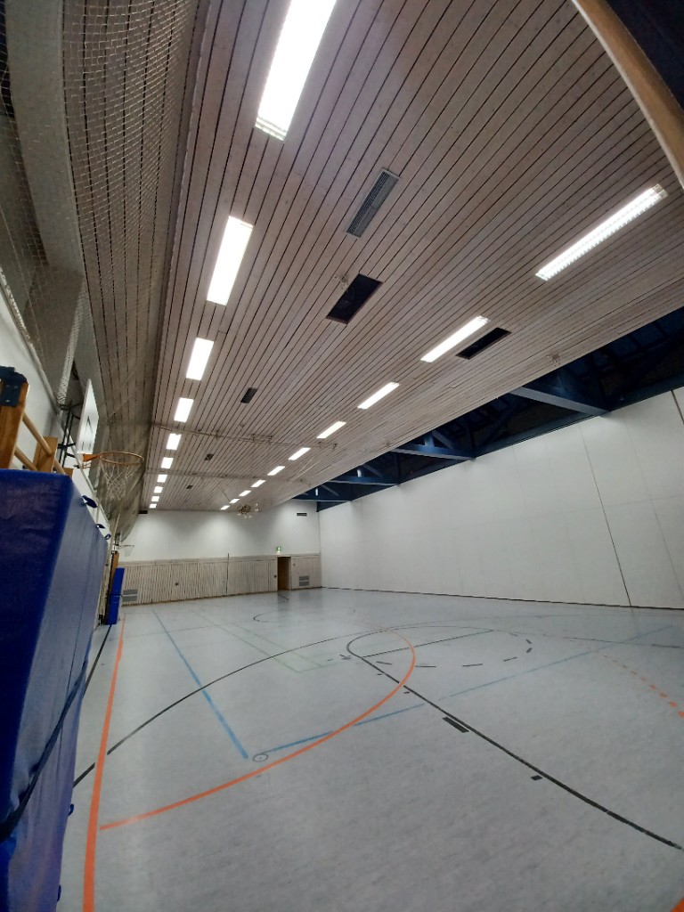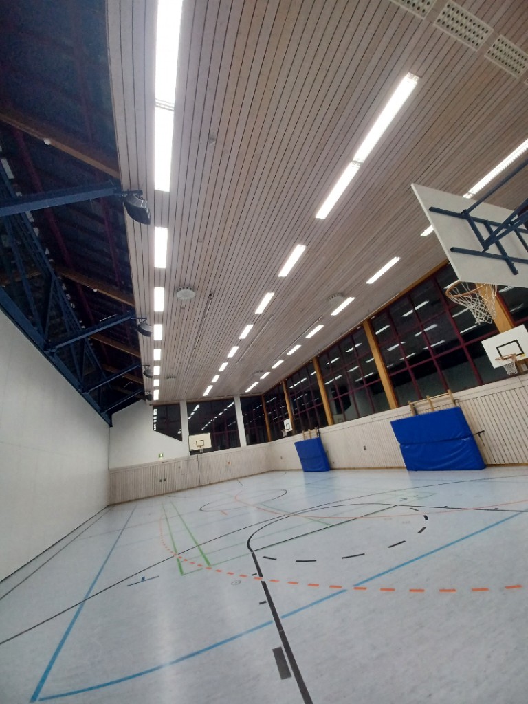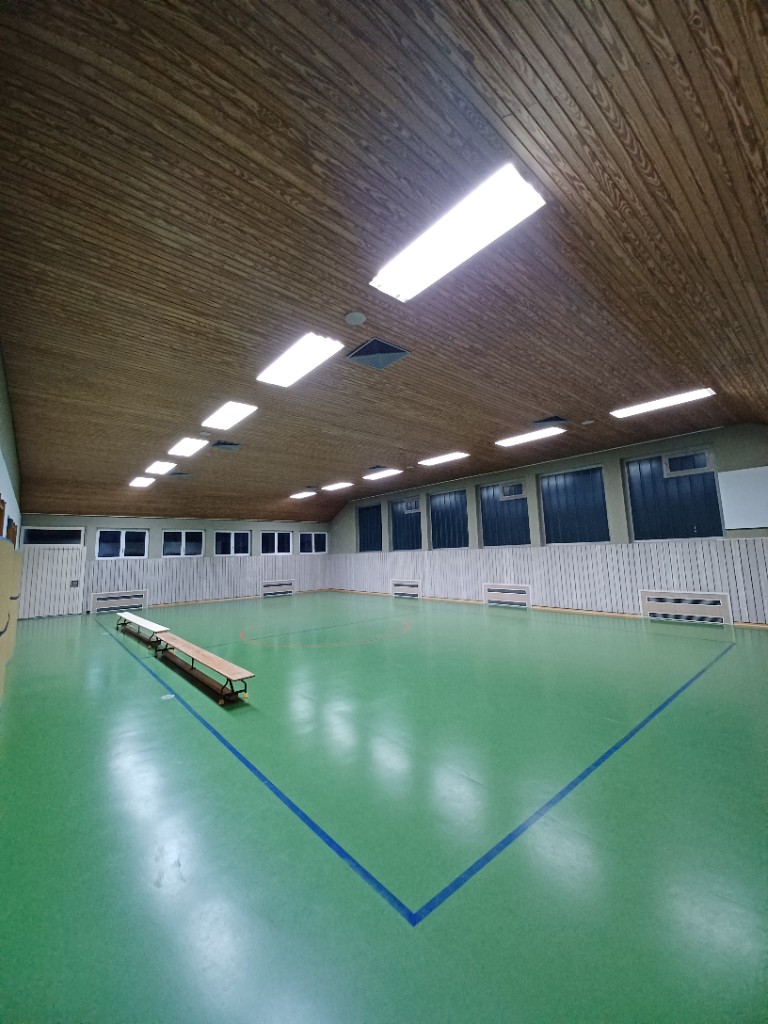 In der Turn- und Festhalle, sowie im Gymnastikraum, in den Fluren, Sanitärräumen und Umkleiden wurden insgesamt 288 Leuchtstofflampen durch moderne, energieeffiziente LED-Leuchtmittel ersetzt. Der Austausch erfolgte gezielt in Bereichen mit hoher Nutzungsfrequenz, um den Energieverbrauch langfristig zu senken. Die Umsetzung des Projekts erfolgte mit Unterstützung der LEW im Rahmen der Klimaschutzprämie.