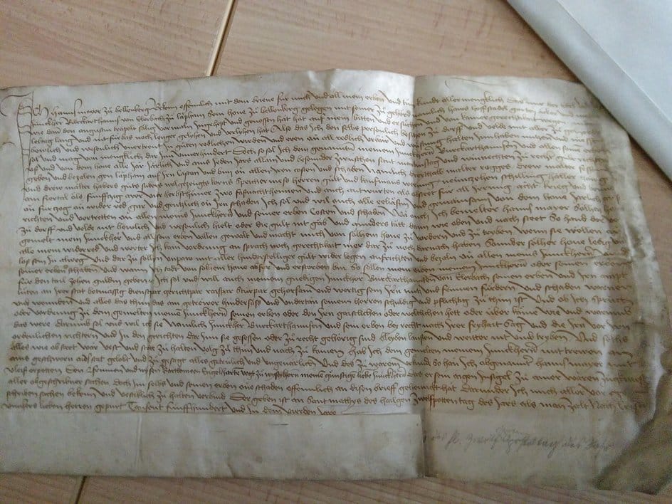 Damit hätte aber auch Karl Vöhlin nur allzugern sein Gebiet arrondiert. Auch das Drittel der verwitweten Ellerbacherin Anna von Freyberg steht bereits auf seiner Einkaufsliste. Anfang 1591 schreibt er also an die beiden Tutoren der Schwestern, sie mögen doch den Besitz an ihn, den Vöhlin, veräußern. Diese lehnen ab.