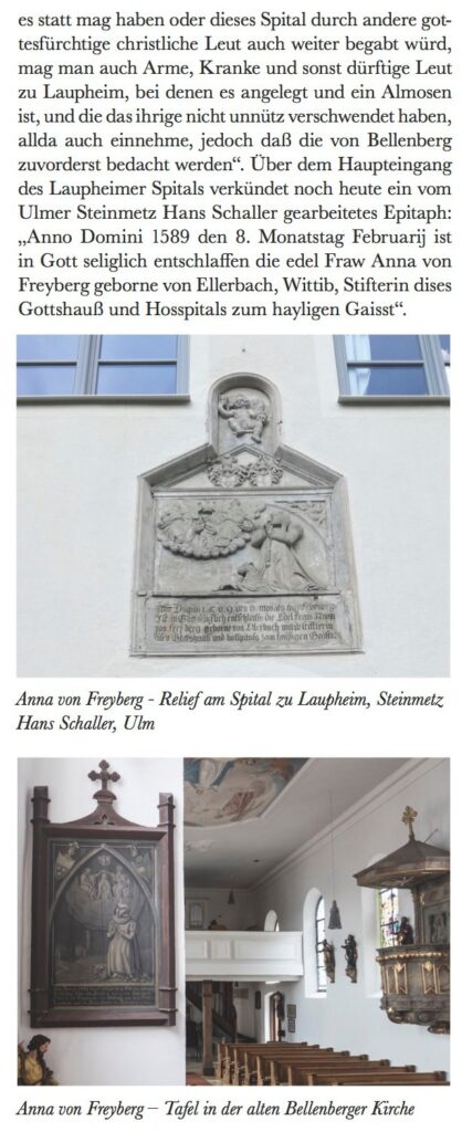 Anna von Freyberg ist inzwischen verstorben und hat ihr Drittel in eine Armen-Stiftung zu Laupheim umgewandelt. Als Karl Vöhlin versucht, wenigstens diesen Part zu bekommen, wird zu Prag explizit beschlossen, dass dieser Anteil in Bestimmung für fromme Zwecke nur nicht an den Vöhlin zu verkaufen ist, da die armen Leute von Bellenberg und Laupheim diese Stiftung sehr nötig hätten. Noch bis 1595 versucht Karl Vöhlin alle Hebel in Bewegung zu setzen, um das Laupheimer Drittel in seinen Besitz zu bekommen – vergebens.