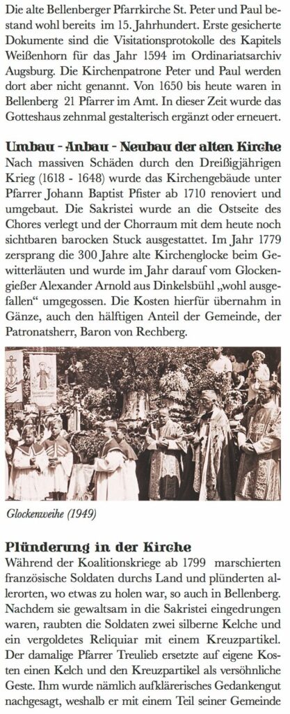 Der zweite Teil unserer Zeitreisen führt uns in das Jahr 1795. Während an der Grenze der erste Koalitionskrieg mit dem revolutionären Frankreich ausgefochten wird, ist es im beschaulichen Bellenberg – noch – ruhig. Erst1799 werden die französischen Truppen die Bellenberger Sakristei plündern.