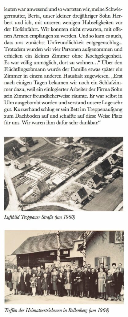 „Eingezogen sind wir am 17. Juni 1953. – Ein denkwürdiges Datum: Es war der Tag des Arbeiteraufstands in Berlin. – Es fehlten noch die Haustüre und der Treppenaufgang. Auch war das Haus außen noch nicht verputzt und eine Garage gab es auch noch nicht. Dies alles spielte aber keine große Rolle. Endlich hatten wir wieder ein eigenes Zuhause. Welch ein glückliches Gefühl!“