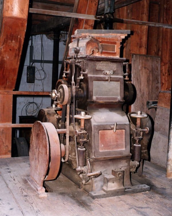 Die Mühlenbauanstalt Seck in Dresden lieferte drei Walzen-stühle. Seit 1914 wird in der Mühle auch Strom erzeugt.