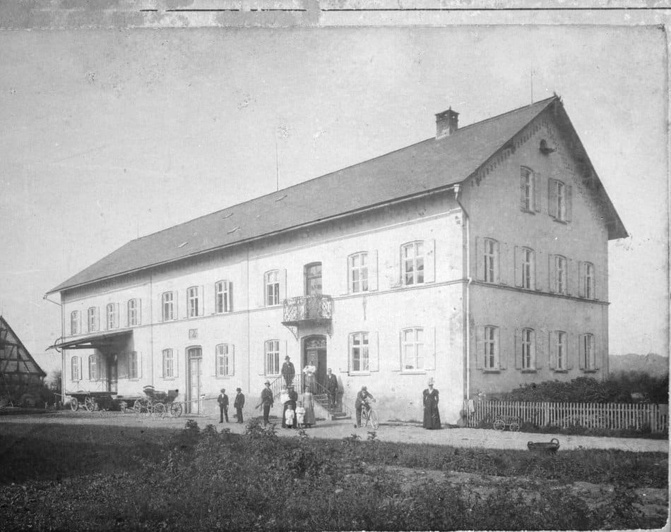 Der Nebel währte nicht lange. Noch ehe wir bei der Haltstation Senden anglangten, war es so weit hell geworden, daß man den Gurrenhof und den Freudenecker Hof erkannte. Das Stationshaus in Senden – noch wohnt wie bei fast allen Stationshäusern der Bahn in den öden Fensterhöhlen das Grauen – war festlich geschmückt und brachte den Reisenden Schwarz und weiß ein Willkommen. Auf einem Kartoffelacker zur Linken war Sendens Artillerie – zwei Böller – aufgestellt und begrüßte die Willkommengeheißenen. Vor dem Donner der Geschütze zerteilte sich vollends der Nebel. Wir fahren weiter. Dort rechts grüßt uns die Steinlesmühle, links sehen wir Wullenstetten, Illerberg. Die Lokomotive pfeift um uns anzumelden.