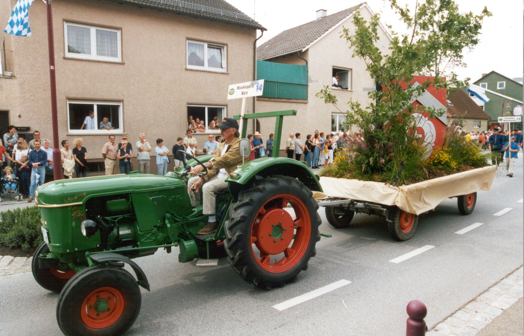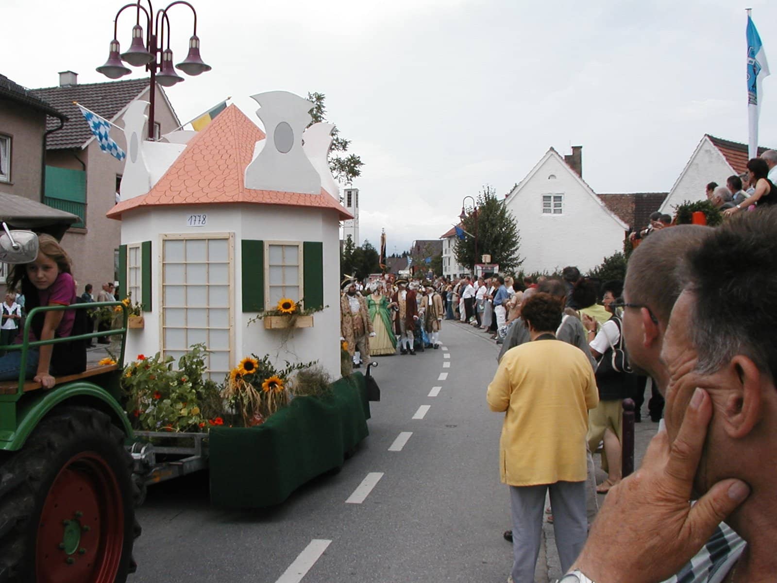 Der Nebel währte nicht lange. Noch ehe wir bei der Haltstation Senden anglangten, war es so weit hell geworden, daß man den Gurrenhof und den Freudenecker Hof erkannte. Das Stationshaus in Senden – noch wohnt wie bei fast allen Stationshäusern der Bahn in den öden Fensterhöhlen das Grauen – war festlich geschmückt und brachte den Reisenden Schwarz und weiß ein Willkommen. Auf einem Kartoffelacker zur Linken war Sendens Artillerie – zwei Böller – aufgestellt und begrüßte die Willkommengeheißenen. Vor dem Donner der Geschütze zerteilte sich vollends der Nebel. Wir fahren weiter. Dort rechts grüßt uns die Steinlesmühle, links sehen wir Wullenstetten, Illerberg. Die Lokomotive pfeift um uns anzumelden.